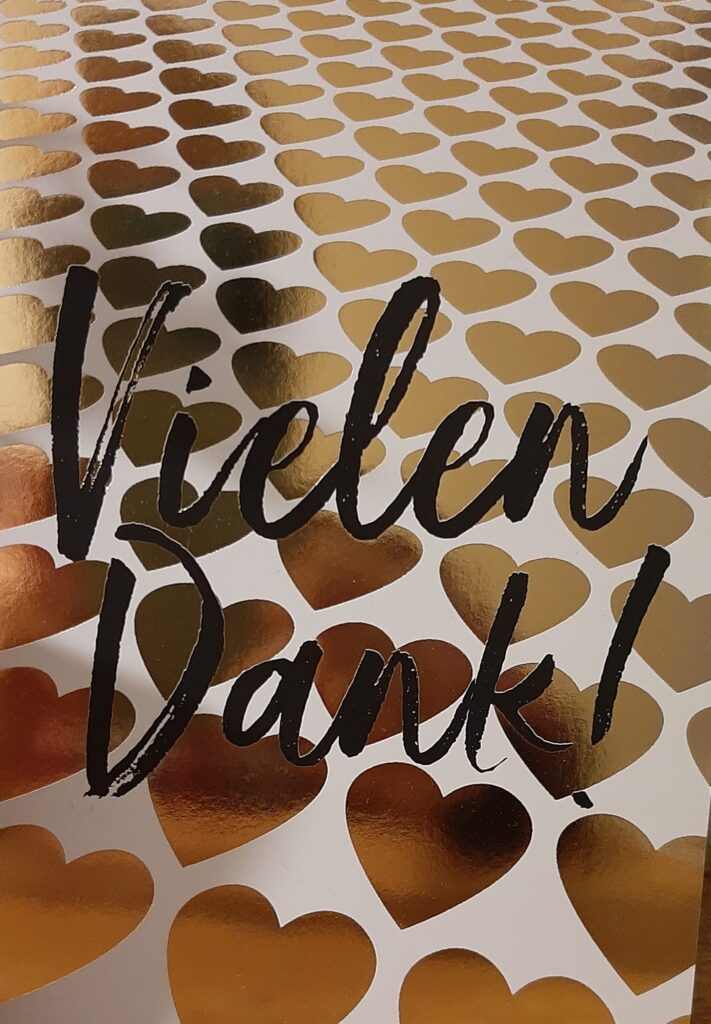 Ein paar Tage später war es Mona, die sich über ein Danke freuen durfte: die nette Dame hat ihr eine handgeschriebene Postkarte geschickt – sozusagen ein Danke fürs Danke – für das jetzt Mona wieder von Herzen Danke sagt!